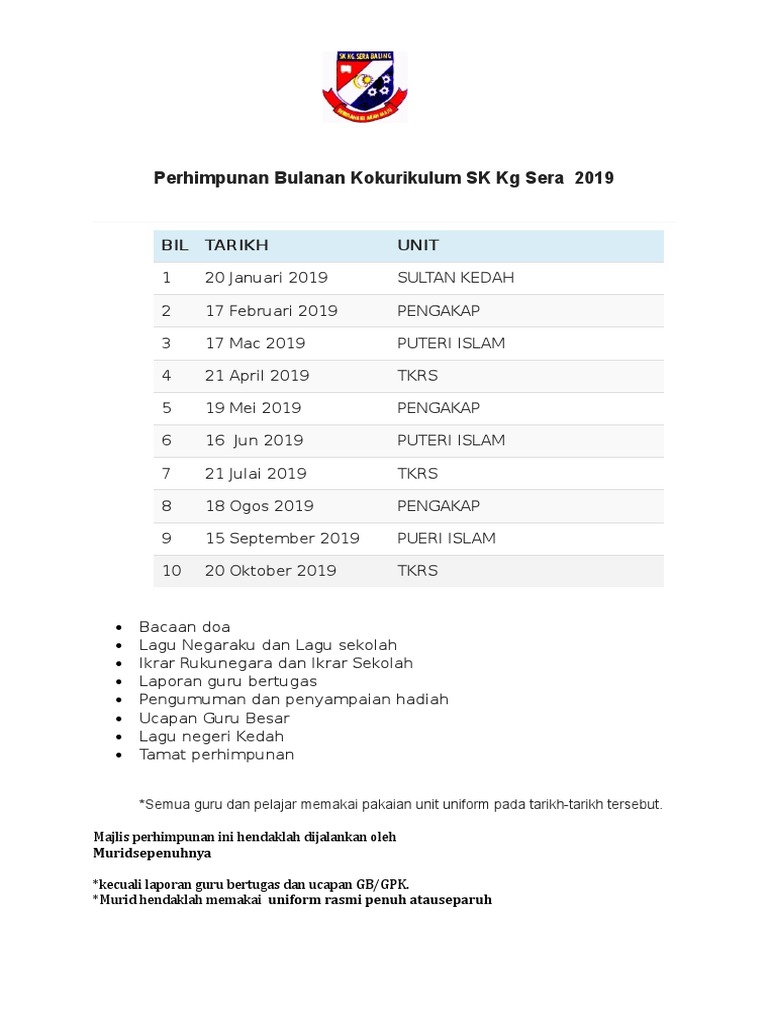 Antara perkara penting yang perlu dimasukkan adalah seperti tarikh peperiksaan program dan aktiviti sekolah sambutan program agama dan menyusun latihan dalam perkhidmatan kursus. Kedudukan lencana sekolah tanda nama kpm hanya keluarkan garis kedudukan lencana. Murid tingkatan 6 sem 2 IBD tahun 2 dan program pra universiti sem 3 di sekolah sukan malaysia hadir tanpa penggiliran.